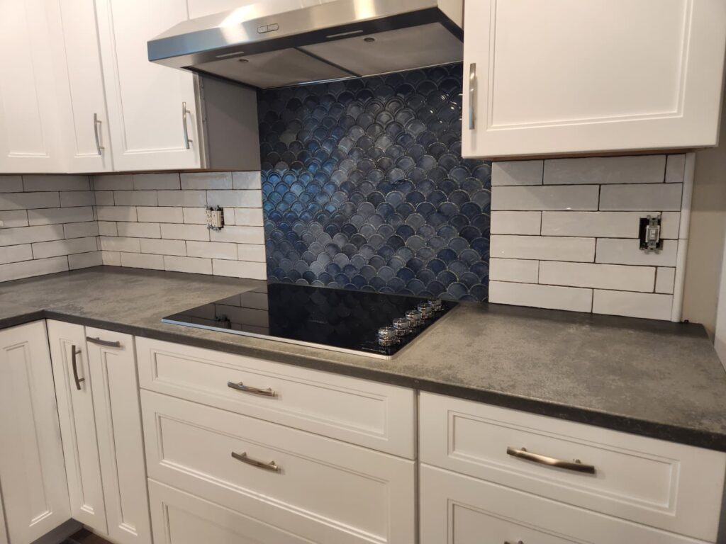 Kitchen backsplash tile installation using ceramic and porcelain tile, perfect for modern kitchens and home renovations.