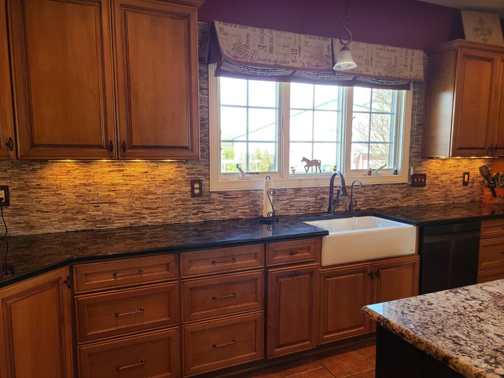 Ceramic, porcelain, and glass tiles are popular choices for kitchen backsplashes. They’re easy to clean and resistant to heat and moisture. Natural stone is also beautiful but requires sealing. We’ll help you choose based on your style and maintenance preferences.